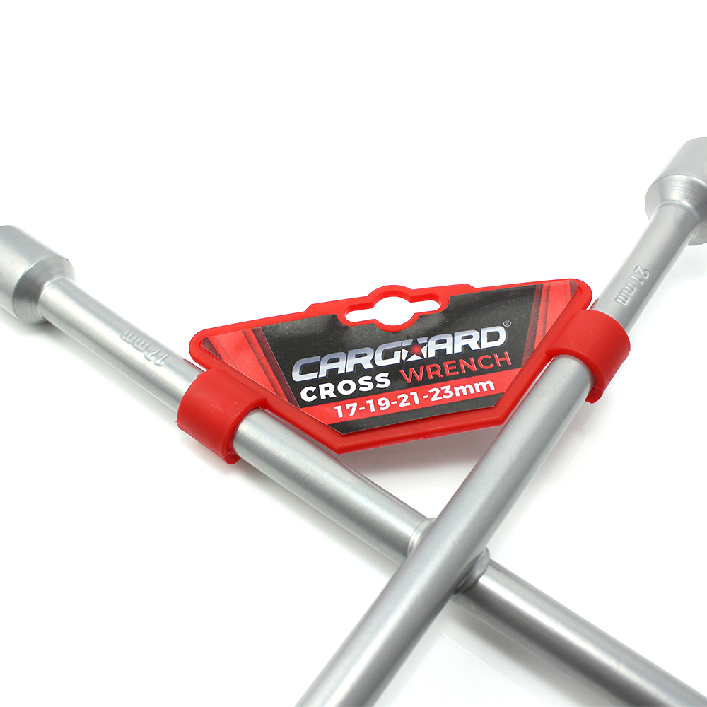 Cheie de roată în cruce, cu mufe 17 – 23 pentru a rezolva orice pană cu maximum de ușurință.