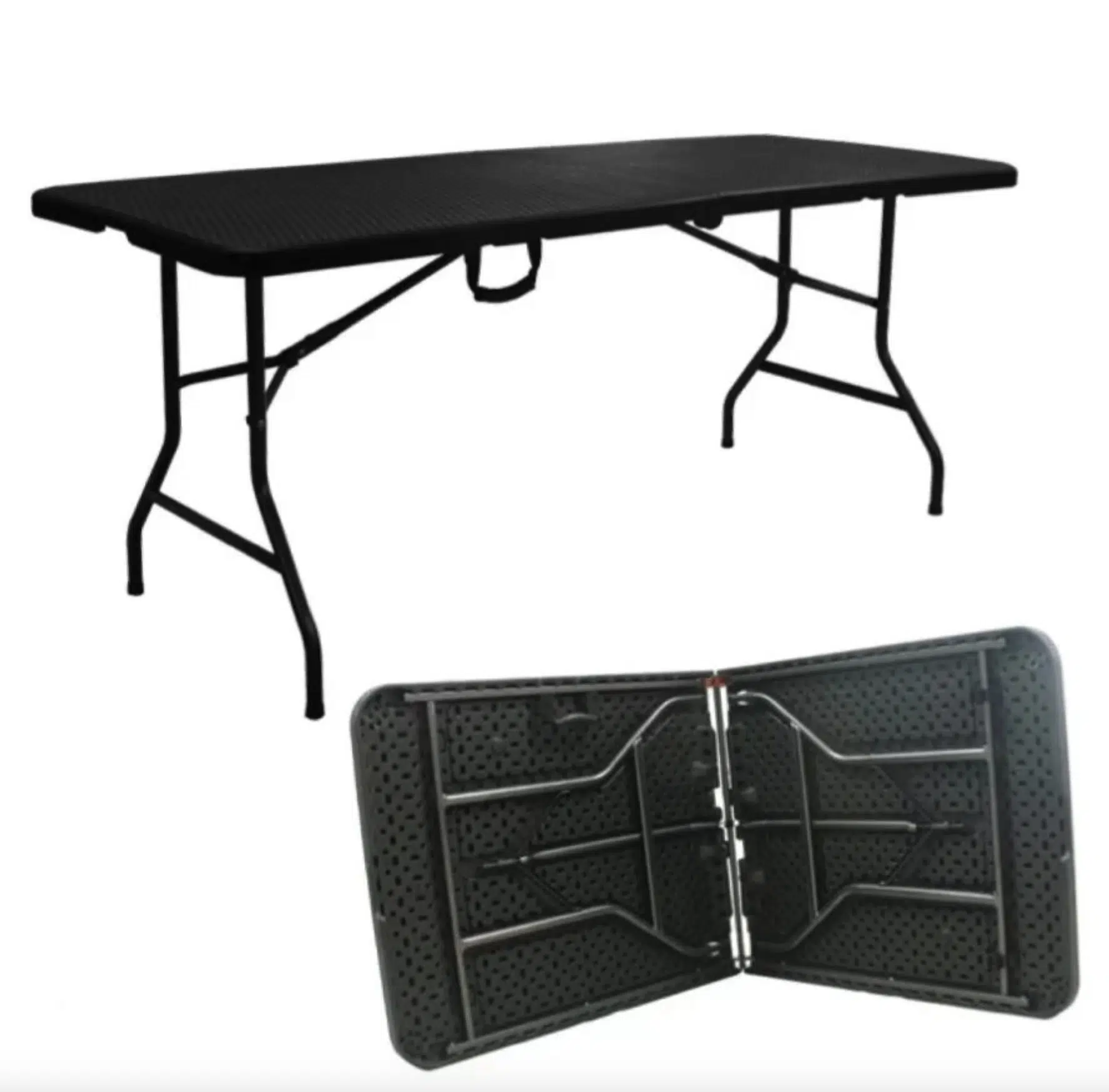 Masă Pliabilă Catering și Grădină – 180×74 cm, Aspect Ratan Negru, Tip Valiză