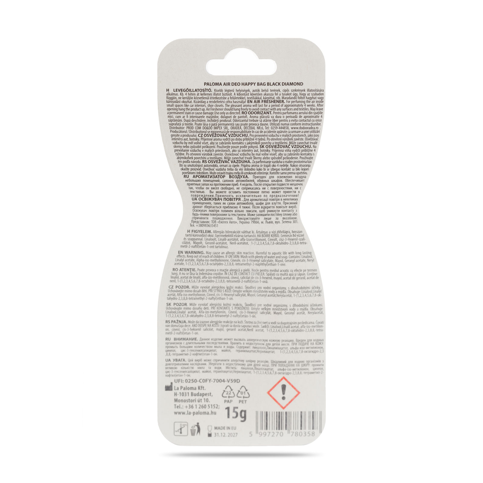 În concluzie, Paloma Happy Bag – Black Diamond este soluția ideală pentru a aduce strălucirea și eleganța în apartamentul sau mașina ta. Transformă-ți spațiul într-o oază de prospețime și rafinament cu acest produs de lux!